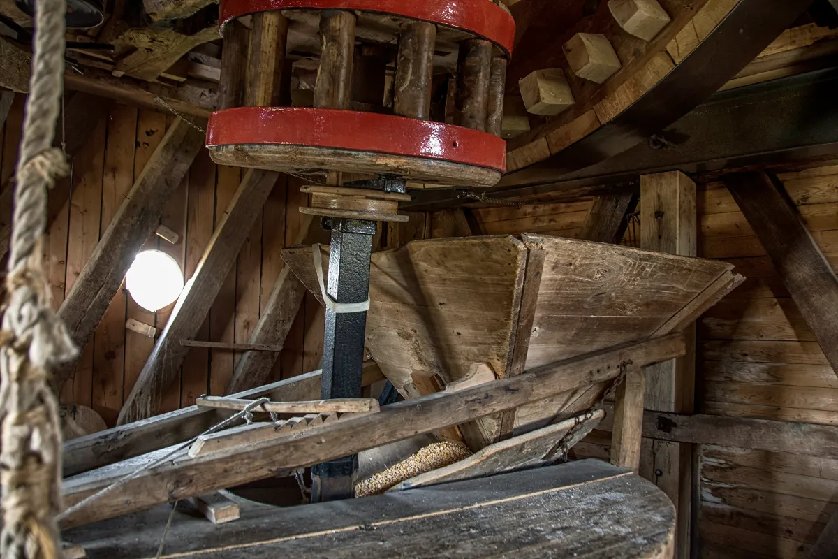 De prachtige molen heeft twee steenkoppels in natuursteen van La Ferte-sous-Jouarre (F) met pennekeswerk en een bollenregulator. De balken zijn gedecoreerd met spreuken en gedichten van de voormalige molenaars. De zoon en kleinzoon van de laatste beroepsmolenaar Frans Van Herck wonen slechts enkele huizen verder.