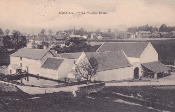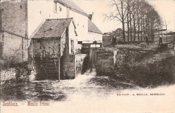 Deze korenwatermolen dateert uit de 17de eeuw en behoorde toe aan de abdij van Gembloux. Het huidig gebouw is 19de-eeuws en is thans ingericht als woning. Zowel het binnenwerk en het overdekt bovenslagrad zijn verdwenen en de spaarvijver is gedempt.