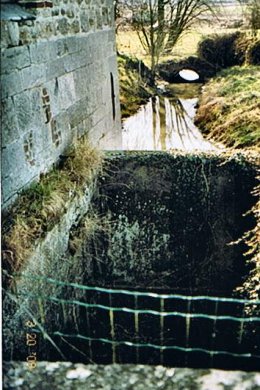 Une vanne est touours visible en amont du moulin. Depuis l'abandon de ce dernier, elle déverse les eaux de la rivière par une sorte de trop-plein qui rejoint ainsi, vers l'aval, le cours naturel de la Sille.