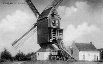 - 1818, "Il existe dans cette commune deux moulins à vent, dont l'un appartenant à monsieur Guyot François Louis, rentier à Anvers, est occupé par Vanoten Charles Alexandre, et l'autre appartenant au sieur Spruyt, propriétaire à Capellen est activé par Deheel Jean. Ces deux moulins consistent en une barrage en bois à pivot reposant sur un pied de maçonnerie. Celui de M. Guyot a pour dépendance un moulin auxilliaire à chevaux."
