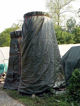 Horizontale beschieting. Kap met koperen platen bedekt. Verdekkerde roeden. Vlucht: 9,80 meter