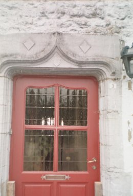 On observera toutefois que la porte du rez-de-chaussée est nettement enterrée par rapport à la voirie. A l'opposé de ces accès du moulin, une porte millésimée (1604) avec linteau décoré en accolade semble davantage correspondre à l'entrée d'une habitation qu'à celle d'un moulin. Peut-être s'agit-il de l'habitation primitive avant que le bâtiment ne soit prolongé vers la droite. De ce côté, les niveaux sont établis à des hauteurs différentes par rapport à la travée de transbordement.