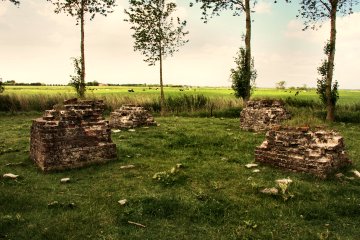 Steenzolder: 2 maalstoelen: molenstenen met diameter van 1,80 en 1,30 m