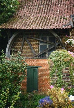 Haaks tegenover een voormalig boerenhuis die reeds in een akte van 1789 werd vermeld, staat een bakstenen schuur met aan de buitenmuur een wiel van een botermolen. De gebouwen behoorden vroeger toe aan Kamiel Goossens, brouwer en burgemeester van Meldert van 1891 tot 1910. Op de puntgevel van het wagenhuis is een anker met het jaartal 1819.