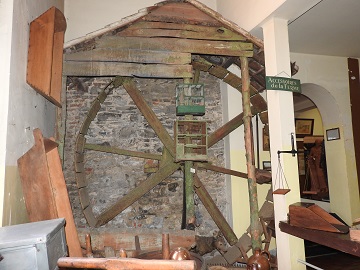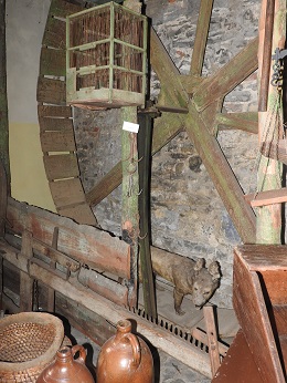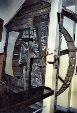 Het wiel diende om te karnen (nog aanwezige karnton) en te slijpen (nog aanwezige slijpsteen).