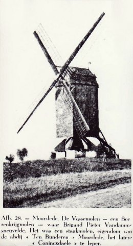 Van 5 tot en met 8 november 1941 liet molenaar Camile D'Hondt zijn molen slopen door de gebroeders Vanhaelemeersch uit Ruddervoorde. Tijdens deze afbraak noteerde heemkundige Joseph Delbaere enkele inschriften, die nog dateerden uit de tijd dat de molen in Dadizele stond. Zo las hij in keurige letters op het vangwiel de naam "Gabriel Sabbe" (molenmaker) en op de steenbalk het jaartal 1780 naast de goed leesbare lettertekens "Y ALLE E HOOALL" waarvan de betekenis niet kon achterhaald worden. In minder dan drie dagen tijd lag de Vossemolen geveld en opgebaard. Nog geen drie dagen later lag ook de molenaar, die hem had laten afbreken, geveld. Op 11 november 1941 kreeg hij een beroerte, werd gebiecht en berecht, geraakte wel voor enige tijd aan de beterhand maar stierf vijf maanden later op 6 april 1942. Dat deed heemkundige Joseph Delbaere de bemerking ontlokken: "Of bestaan er toch molengeesten die zich wreken als men een molen laat afbreken?"