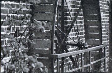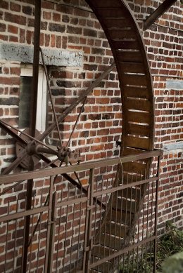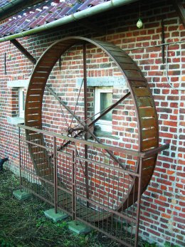 - IJzeren loopwiel met houten tredplanken, diameter 250 cm