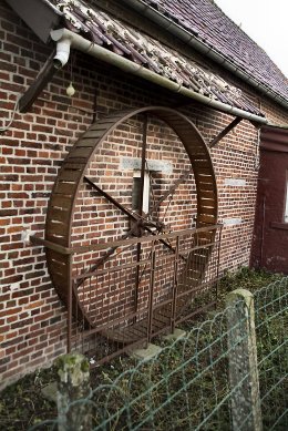 Aan de zijgevel van de haaks op de weg (Romont 11) staande hoevewoning bevindt zich nog een ijzeren hondenwiel met houten tredplanken. Het rad dreef vroeger een karnton aan. De diameter is 250 cm, de loopbreedte 33 cm en is beschermd onder een kleine luifel met dakpannen. Het gebouw en het wiel zijn zeer goed onderhouden,