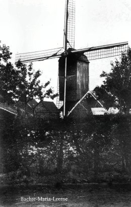 "men vindt in de gemeente Bachte-Maria-Leerne twee molens door de wind bewogen, dienende tot het malen van graan. De taksateur heeft die in twee klassen verdeelt, tot het bepalen van hun verschillende waarde. Deze molens, wel voordelig gelegen, zijn toch de beste van het canton niet. Geen pachtcontracten ons aanwijzende de jaarlijkse opbrengsten dier goederen, heeft men die moeten schatten in evenredigheid der alreede gekadastreerde hun omliggende, welke werking met de menigvuldige inlichtingen bij de pachters en zaakwaarnemers ingewonnen ons de uitkomst heeft gegeven als volgt: de 1e klasse in evenredigheid der andere tot lijn genomen moet geschat worden op een onzuivere jaarlijkse opbrengst van f. 150,- waarvan tot onderhoud en herstel een derde moet afgetrokken worden. Derhalve in zuivere jaarlijkse opkomst van f. 100. De 2e klasse, in evenredigheid der eerste, en der omliggende alreede gekadastreerde molens moet geschat worden op een onzuivere opkomst van f. 135,00 waarvan een derde aftrek tot onderhoud en herstel belopende tot fl. 45, een zuivere opkomst oplevert van f. 90."