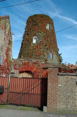 Thans resteert nog de volledige molenromp, die met klimop begroeid is.