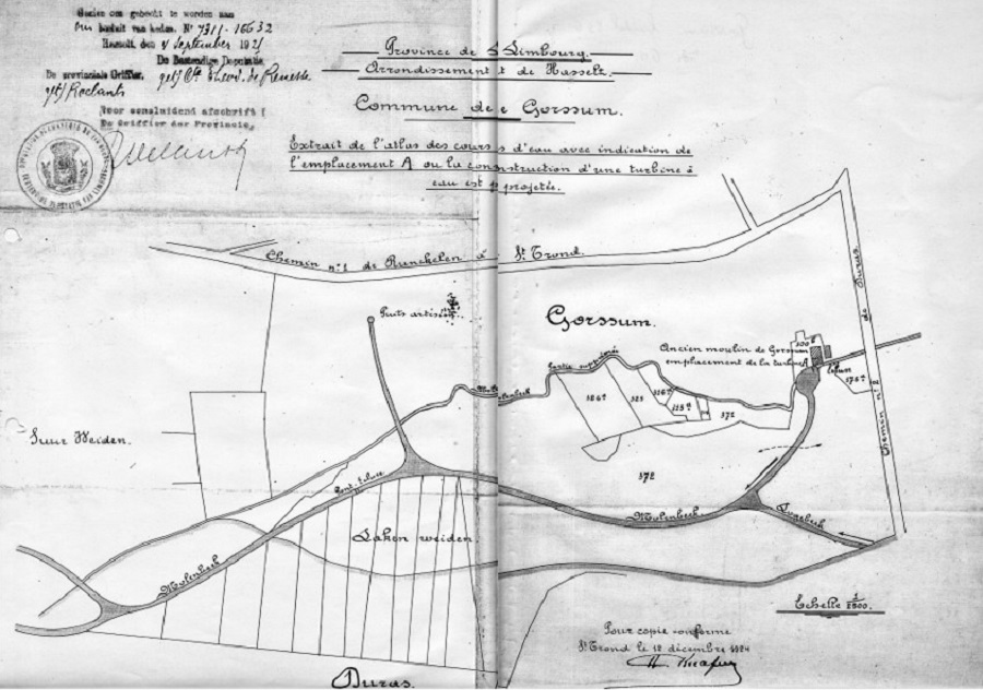 - Provicinciearchief Hasselt, Hinderlijke bedrijven, 1924 (plaatsing turbine op de vroegere watermolen van Gorsum, met plan - gemeld door Gaspar Haldermans, 2018).