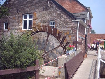 Kleine asput met konische ijzeren of ijzer- en houten raderen; waterwiel oorspronkelijk berekend op dikkere houten as.