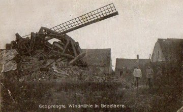 Op 19 oktober 1914 kreeg de molenaar en zijn gezin van Engelse officieren die er ingekwartierd lagen, het bevel te vluchten. De dag erna werd door een Britse patrouille een Duitse spion in de molen betrapt, terwijl hij de wieken heer en weer liet gaan als signaal naar zijn kameraden. Hij werd gefusilleerd ter plaatse. In de nacht van 1 op 2 november 1914 werd de Stenenmolen als laatste van de Beselaarse molens door Duitse pioniers gedynamiseerd. Op het einde van de Eerste Slag bij Ieper op 17 november 1914 lagen op het front tussen Mesen en Beselare 22 windmolens platgebrand, omvergeschoten of gedynamiseerd.