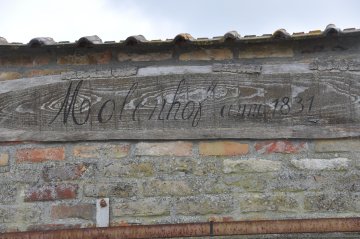 Zwartgebrande balken met inkervingen, steenplaten, stenen enz. zijn tot vandaag bewaard in de stallingen van de boerderij van Michel Vandenbroucke. Op één van die balken is te lezen: "1850 / VERFAILLIE"