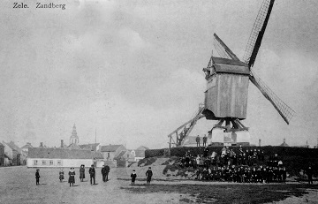 De houten korenwindmolen, later ook gekend als de “Zandbergmeulen” werd al vermeld in de 14de eeuw. In de 16de eeuw behoorde deze toe aan Frans Mettepenninghen.