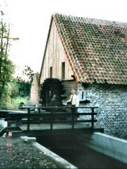 - Ook werd gekozen voor een koppel maalstenen met een kleinere diameter (10 cm kleiner dan voorheen). Hierdoor is minder water nodig om te kunnen malen. De Stiemerbeek kreeg zijn oude bedding terug, zodat het rad weer aangedreven kan worden.