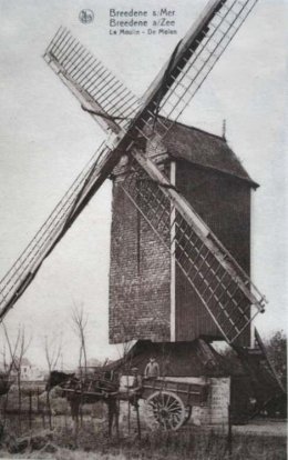- 10.09.1951, erfenis: a) Wullepit-Hubert Julien (voor 2/4 volle eigendom en 1/4 naakte eigendom), werkman te Bredene en b) Hubert-Schallier Henri Joseph (voor 1/4 volle eigendom en 1/4 vruchtgebruik), molenaar te Bredene (molen in puin - overlijden van de vrouw van Henri Hubert)