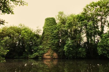 Moulin à vent en pierre et brique sur la site de l'ancienne carrière Rombaux, à peu de distance de la Senne et de la chaussée de Soignies à Enghien. Destiné à l'exhaure des eaux de la carrière.