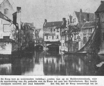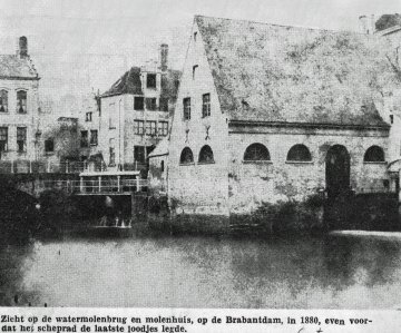 Waar de watermolen zich bevond, werd een huis opgericht, in de jaren 1950 bekend als muziekuitgever Struyf. Een inschrift "Hier was de stadsmolen" hoog in de straatgevel van het huis herinnerde aan de watermolen.