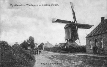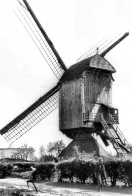 Bij de molen stond links de woning van Karel Peetermans (Kasper) die in 1932 op zijn buik zo verder kruipend de dodelijk getroffen Alfons Sterckx (8 jaar oud, zoon van Rik Sterckx) van onder de wieken haalde.