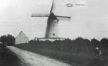 Télésphore Choquet (né à Bouvignies en 1845), agriculteur à Ostiches, a repris le moulin au début du XXe siécle. Son fils Amédée (né à Ostiches en 1896) est le dernier meunier au lendemain de la premiére guerre mondiale. En 1950, le « Blanc Moulin » avait perdu ses ailes et la calotte était déjà en mauvais état. Il restait l'arbre-moteur avec sa tête métallique, le rouet et la lanterne ainsi que l'arbre montant et quelques éléments de la charpente.L'ensemble a été classé comme monument par le Ministére de la Communauté Française sur proposition de la Commission Royale des Monuments et des Sites (arrêté du 20 avril 1982). Un propriétaire privé a envisagé de transformer le bâtiment en habitation mais il a abandonné.