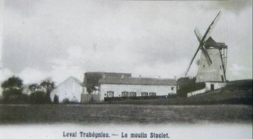 Les plus âgés des habitants de Leval-Trahegnies n'auront aucune difficulté à vous indiquer l'endroit où se dresse le moulin Stoclet. Cependant, avant les Journées du Patrimoine de septembre 2004, bien peu avaient pu y pénétrer. Grâce à la bonne volonté et le dévouement du nouveau propriétaire et des membres du CHLEM 5Cercle d'Histoire de Leval, Epinois et Mont-Sainte-Aldegonde) cela fut chose faite et plus de 1200 visiteurs ont pu écouter l'histoire de ce moulin à vent et en comprendre le mécanisme.