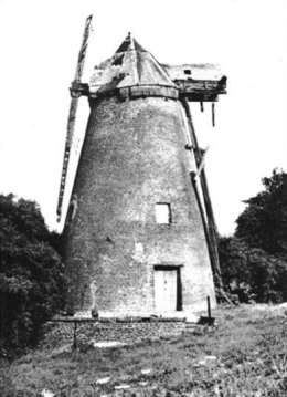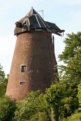 Notre moulin est à tronc conique, en briques. La partie hors sol est haute de 13 m sans le toit. Les fondations plongent à 12 m de profondeur.