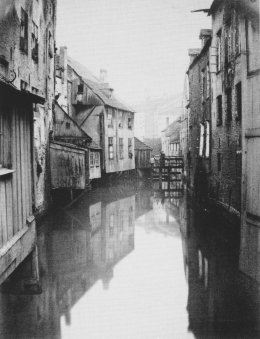 bras principal du Zenne venait du boulevart Anspach, passait sous le port du Miroir, et actionnait le Bantmolen au bout de la rue Van Praet. Il "repectait" le jardin du meunier...