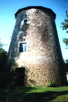 Dans un jardin, moulin à vent en moellons de grés, circulaire et talué, à trois niveaux, de début de 1828. Petites fenêtres à linteau droit sous arc de décharge en grés percées en 1804. Toit conique en roofing. Pales disparues.