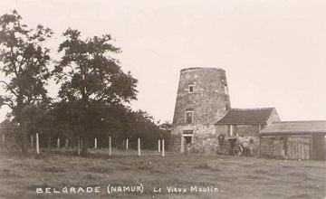Suite aux travaux de canalisation de la Sambre et à la déviation de celle-ci, les moulins à eau de Salzinnes disparaissent aux alentours de 1825. Différentes initiatives voient alors le jour ça et là. En particulier, Pierre Massinon, fermier de Flawinne, introduit en 1828 une demande pour la construction d'un moulin à vent sur la parcelle cadastrale n°427 - section D. Celle-ci aboutit la même année et le moulin Massinon est construit. Belgrade était à l'époque un hameau de Flawinne.