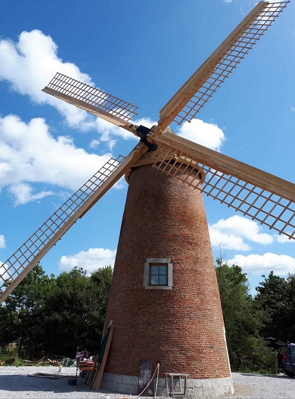 La rénovation du moulin à vent de Tromcourt avec Les Charpentiers de Troye où on refait tout le mécanisme de mouture + un alternateur synchrone de 7,5 kw - 750 t/m avec son refroidissement.