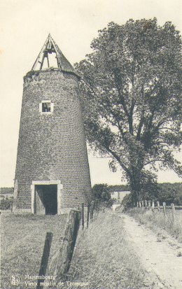 Interloqué par la ruine qui me nace le moulin de Tromcourt à Mariembourg, André Colonval s'est intéressé aux moulins à vent. Il a établi un relevé non exhaustif des moulins qui se dressaient dans les campagnes de Wallonie et de la France toute proche. Des premiers moulins à vent en bois et tournant sur un socle au sol, il ne reste que très peu d'exemplaires dont celui de Woluwé dans la banlieue bruxelloise. Les autres modèles bâtis en pierre et en briques ont survécu plus longtemps et certains ont fait l'objet de sauvegarde comme le moulin blanc de Grand-Leez dans le Namurois. D'autres sont devenus des maisons d'habitation et ont là trouvé une autre vie. Dans la Botte du Hainaut, des moulins à vent ont fait tournoyer leurs ailes à Bailièvre et à Frasies entre Sivry et Grandrieu. Il n'en subsiste aucune ruine et ils sont mentionnés dans des écrits ou sur des cartes anciennes.