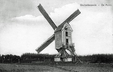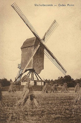 - ca. 1830: "houten standermolen, hebbende twee paar steenen welke niet gelijktijdig kunnen gebruikt worden, hij is gunstig bij het dorp gelegen en is bij onderhandsch contract van 21 february 1822 aan Ferdinandus Hendrickx verhuurt geweest. De pachter is Joannes Mermans, molenaar te Wechelderzande".