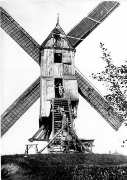 We zien hem aangeduid op de Ferrariskaart (ca. 1775) met het bruin symbool van een staakmolen, in de Atlas der Buurtwegen (ca. 1844), de topografische kaart van Ph. Vandermaelen (ca. 1850) en de kadastrale kaart van P.C. Popp.