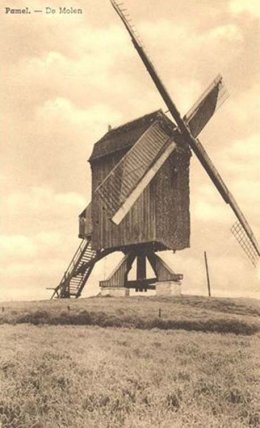 Een eerste molen werd hier al voor 1391 gebouwd: 'Item liven wade heeft ghenomen de moele te pamele tenen termine van VI jaren lanc duerende …' (uit de pachtovereenkomst tussen Lieven Wade en de heer van Pamel, opgetekend in 1391).