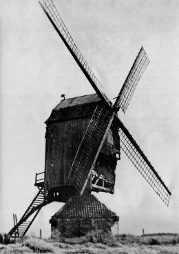 (1) Het was een houten standaardmolen die vooral uit eikenhout gemaakt was, onderaan was olm verwerkt en de spillen van de wielen waren vervaardigd uit acaciahout.