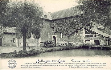 Deze watermolen dateert van 1646. Op de buitenmuur bevinden zich twee wapenschilden: van de adellijke families van Seraing en van Ponty. (Godefroid de Seraing, heer van Hollogne, was immers gehuwd met Hélène, Isabelle de Ponty). Op deze plaats stond echter voorheen ook al een watermolen: vermeldingen in 1539 en mogelijks zelfs reeds in 1103.