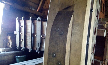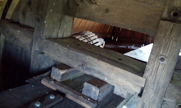 - Molenas met vangwiel zonder kammen en Vlaamse blokvang, vang met vangtrommel, 1 koppel kunststenen en haverpletter met riemaandrijving op het gelijkvloers