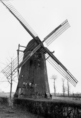 Door de gevechten en ee bombardement van september 1944 werd de windmolen beschadigd (met name het hekwerk van de wieken), maar de molen stond nog recht overeind. Dat zien we op een foto genomen door Donald Muggeridge op 12 december 1944. In 1945 volgde dan de sloop.