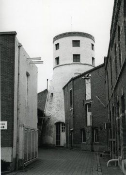 - 1855: plaatsing vann een stoommachine, mits toelating van de Bestendige Deputatie van de provincie Oost-Vlaanderen op 03.06.1846; molen beschreven als graanmolen door wind en stoom, op A64a.