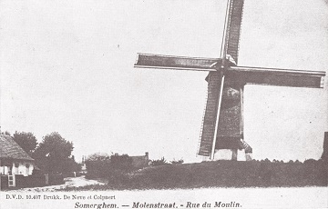 Denis Pieters m.m.v. Stefaan De Groote, "Meetjesland in de Grote Oorlog", Brugge, De Klaproos, 2015, p. 59 (met Duitse oorlogsfoto uit 8 maart 1916, met een groepsfoto van de 8ste compagnie van het Reserve-Infanterie-Regiment 246, die al enkele weken te Zomergem op rust was en die voor een militariire training naar Hasselt trok. Enkel het onderste gedeelte van de molen is zichtbaar).