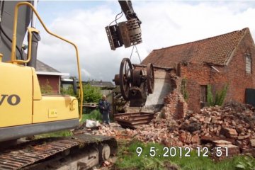 Dat "statuut" belette echter niet dat, ten behoeve van een verkaveling, alles op 9 mei 2012 werd gesloopt; eerst de boerderij met bijhorende stallen, dan de maalderij met de schoorsteen. De firma Adams Poland nv uit Beerse hield tijdens de afbraakwerken rekening met het mechanisme, zoals de armgasmotor en twee steenkoppels. Deze werden overgebracht naar het museum "de Vergane Glorie" te Baarle-Hertog. De Nederlandse Stichting Levende Molens uit Roosendaal schreef een protestbrief naar het college van burgemeester en schepenen van Rijkevorsel (zie bijlage).
