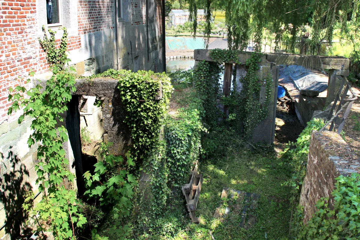 Het 15 are omringende terrein werd omgevormd tot een middeleeuwse moes- en kruidentuin met meidoorn- en mispelhagen, een kleibakstenenterras en de “konkel” (het spaarbekken en de oorspronkelijke samenloop van Zuun- en Gaspeldoornbeek) heraangelegd. Naast aanplantingen van fruit- en loofbomen versiert een kopij van een functionele kleien broodbakoven uit Bokrijk dit geheel. Eveneens is een parkeerruimte in originele kasseien voorzien.