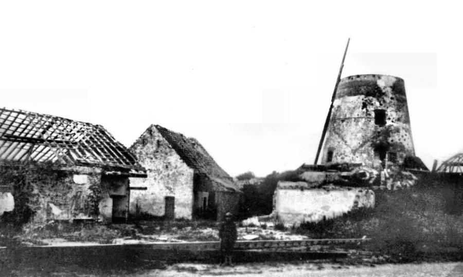 Op het einde van de eerste wereldoorlog, in 1918, werd de molen vernield. Toch werd de molen nog hersteld en weer in gebruik genomen. Door een onvoorziene windruk sloeg de molen op hol waarbij de molenstaart in de lucht ging en de kap afgerukt werd. De jonge molenaar, die al ziekelijk was, was er zo van aangedaan dat hij er nog zieker van werd en stierf. De molenaarsfamilie ging elders wonen.