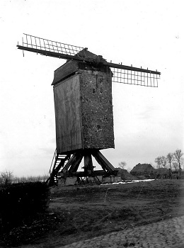 - de Ferrariskaart (ca. 1775) met het bruin symbool van een staakmolen op teerlingen