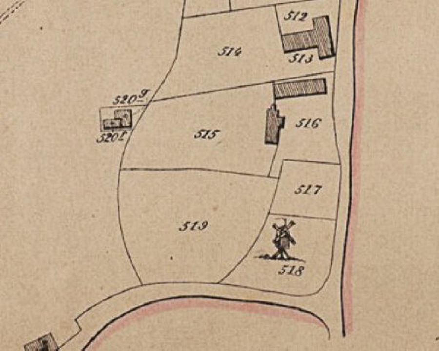 - Kadastrale kaart van P.C. Popp (ca. 1855) met een tekeningetje van een staakmolen