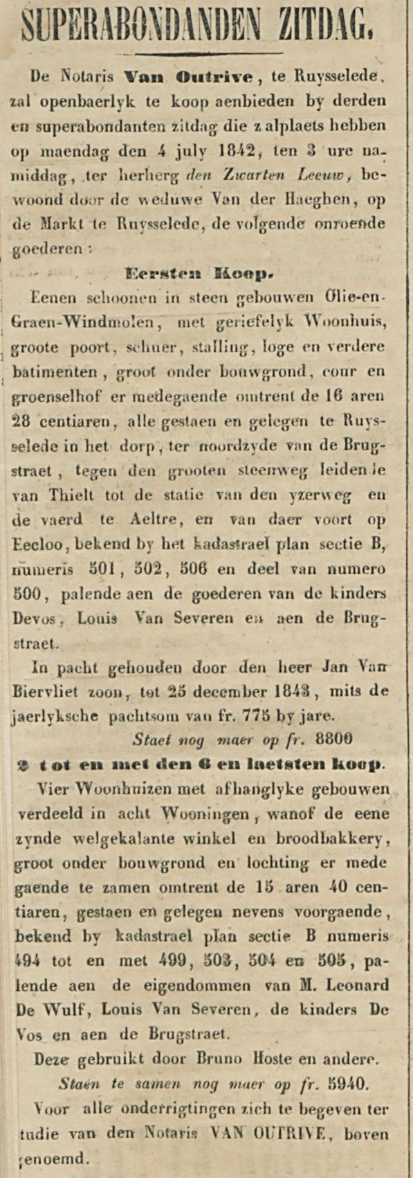 - 08.11.1841, verkoop: Steverlinck Florentinus, koopman te Rijsel (F) (notaris Van Outrive - moulin en briques)