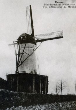 Uit het proces-verbaal van afpaling van de gemeente Melsen uit 1821: "il y a deux moulins à vent servant à moudre des graines grasses et farineuses, exploitées par Aelbrecht et Van den Ostende. Les deux propriétés sont d'égale valeur; à défaut des baux, l'expert s'est informé de la valeur de ces biens dans la commune même et dans celles voisines. Il a raproché les renseignements obtenus avec les évaluations des moulins à vent dans les communes voisines et limitrophes déjà cadastrées et il en résulte qu'il est d'avis que ces deux moulins à vent doivent chacun être évalués à un revenu brut de fl. 150 dont le tiers déduit pour entretien et réparation donne fl. 100 pour revenu net imposable. En proportion des évaluations ci-dessus et pour les mêmes raisons etablies sur le même travail, l'expert est d'avis que le moulin à eau, situé dans la commune de Melsen, doit être évalué à un revenu brut de fl. 90 dont le tiers déduit pour frais d'entretien et réparation donne un revenu net impossable de fl. 60."