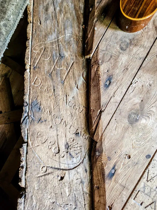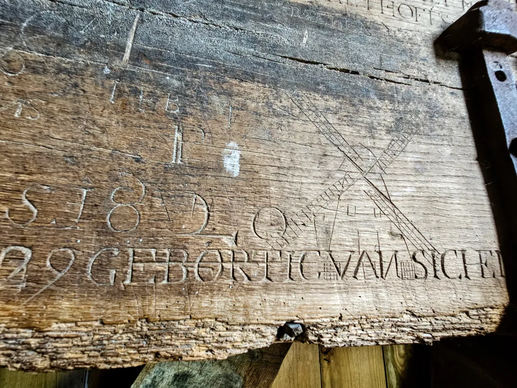 Hij kerfde in 1805 een mooie inscriptie in een balk: