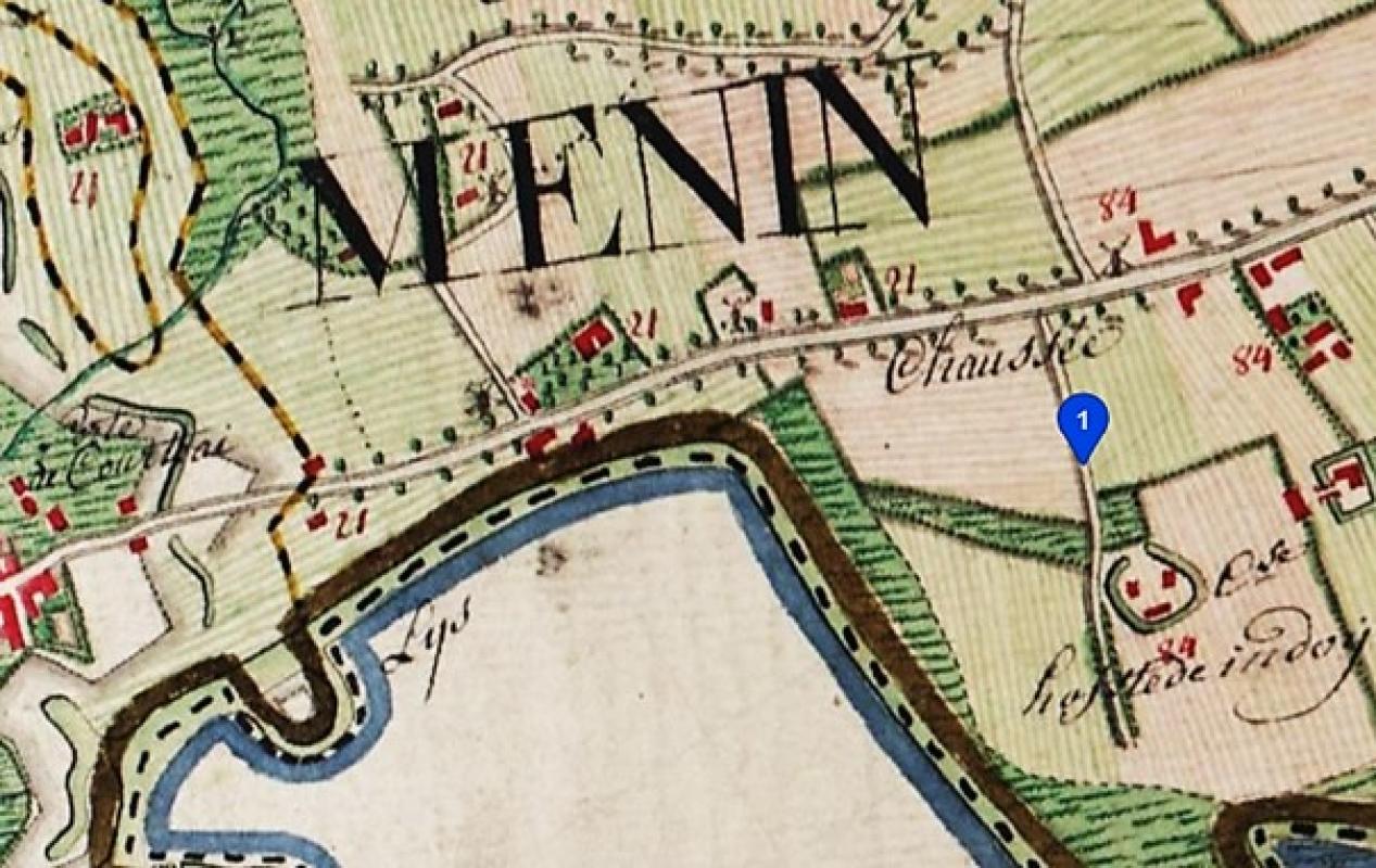 - Plattegrond van de stad Menen, 1789. Handschrift, pen, asuarel, papier, Frans (Algemeen Rijksarchief Brussel, Kaarten en plattegronden in handschrift, reeks II, nr. 8860).